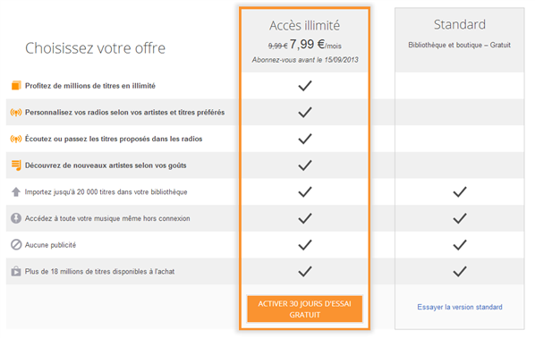 Pour appâter le chaland, l'offre est 20% en dessous de la concurrence, qui plage habituellement sur 10€ par mois, et débute à 7.99€ par mois, si vous vous abonnez avant le 15/09/2013. Après cette date, tous seront sur le même créneau.